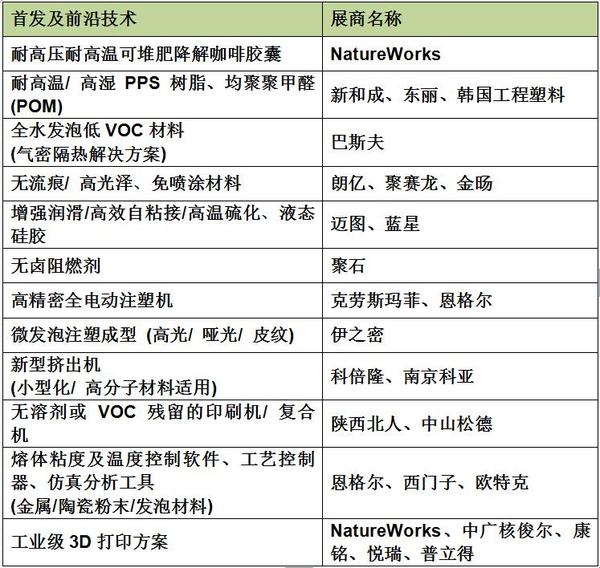 在过去的一年里,许多炙手可热的关键词相继涌现,如无人驾驶、VR、AI、无人机、共享单车等,伴随着这些热词的是技术的提升和创新的脚步。进入“十三五”的第二年,供给侧结构性改革深入推进,依靠现代科技进步成为了关键环节和重点领域。作为橡塑科技的创新前沿阵地,一年一度的“CHINAPLAS国际橡塑展”继续领跑业界,展商趁此盛会推出最新研发的技术以飨观众,梁雅琪透露,今届展会有超过40项全球或亚洲首发技术,以及多项热点及前沿技术,包括: