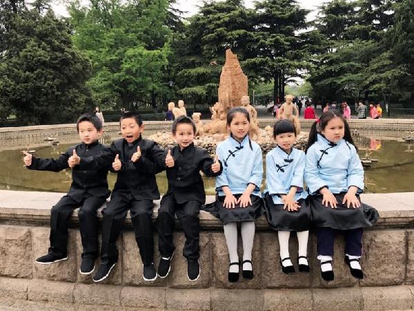 18日上午,青岛嘉峪关学校的同学们分成6个小组,来到中山公园。有的小朋友穿着整齐划一的校服,来到孙文莲池,了解它的历史和典故,以及孙文伟大的革命故事。有的小朋友穿着复古的中山装和五四装,来到中山公园喷泉前,通过对青岛第一个喷泉的了解,找寻喷泉里的故事和科技,文化和历史。小朋友们童声齐鸣,吸引了路人的注目,少年说丝丝入耳,朗读声贯穿于中山公园。