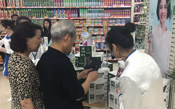消费者正在扫描伊利产品参与互动