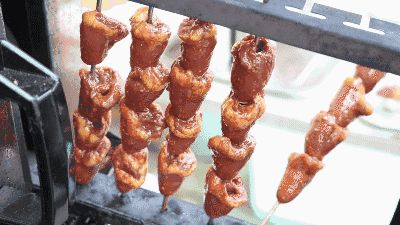 电烤肉是小时候在楼梯小旮旯儿里往外窜的香味儿,不过早些年的那个小摊位是没有这个肉串。现在,电烤肉和拉面似乎成了标配。