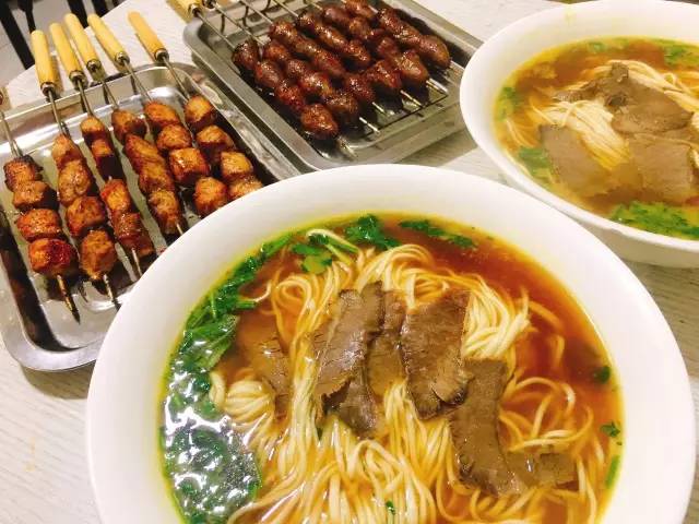 三四串肉串配上一碗拉面,这一餐吃得饱饱的。