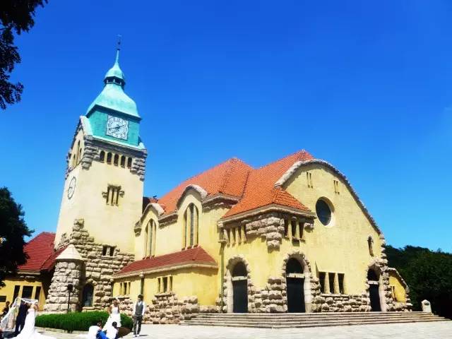 NO!隐藏在江苏路的基督教堂,这个季节梧桐已绿。德国古堡式建筑在青岛并不少见,但 绿钟楼+红屋顶+黄墙面的宗教建筑,只此一家。偶尔有新人来此拍婚纱照,无需排队 ,时光正好。