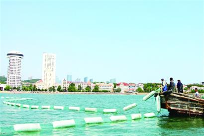 晚报讯 昨日,青岛第一海水浴场在预定水域投放防鲨网,900米长的防鲨网围成了一个“厂”字形,可为游客提供安全游泳环境。一浴将于6月1日(下周四)正式开放。其他浴场开放时间将于7月1日开放,9月25日关闭。