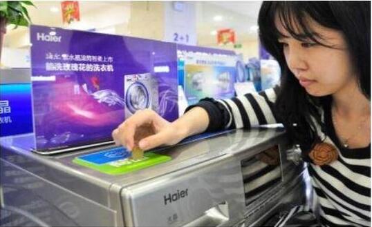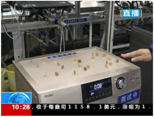 海尔直销员首次在运转的洗衣机上立起硬币证明海尔洗衣机FPA电机的安静洗护力