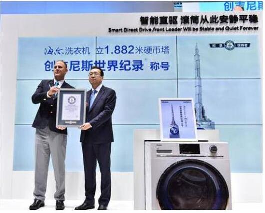 亮相AWE,在洗衣机上立起1.882米硬币塔,成功申请吉尼斯世界纪录。