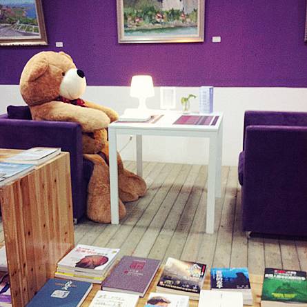 美术和书籍的结合,店里有一整面墙的落地窗,视野很棒,一眼望出去能看到沙滩。