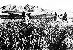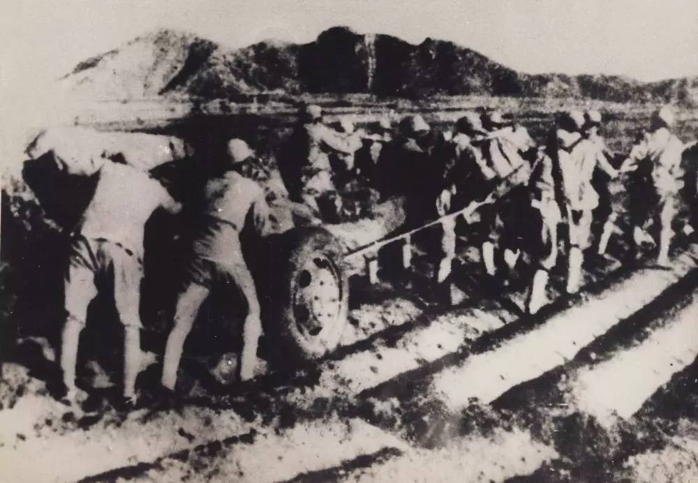 追歼逃敌的解放军途经崂山华荫村。
