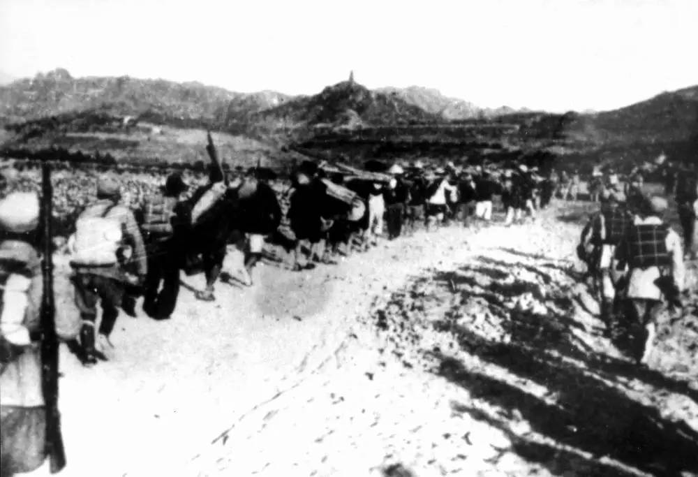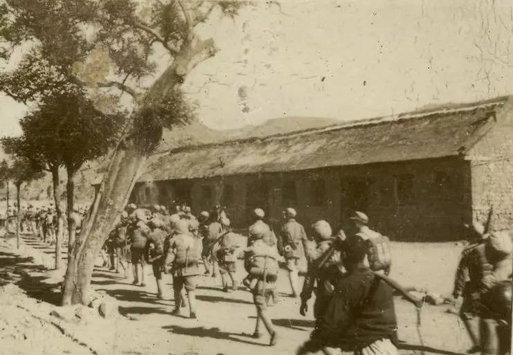 青即战役中,人民解放军行军路过营上村。