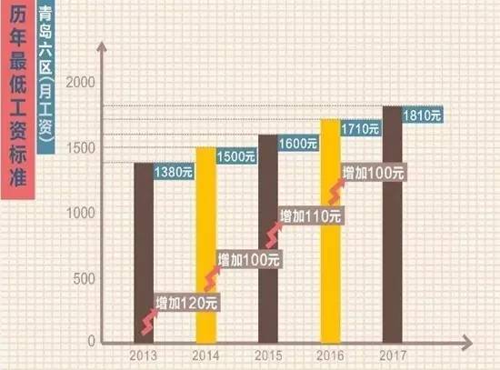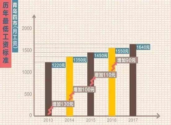 6月起,青岛上调最低工资标准,调整后六区月最低工资标准为1810元,四市为1640元。调整标准为: