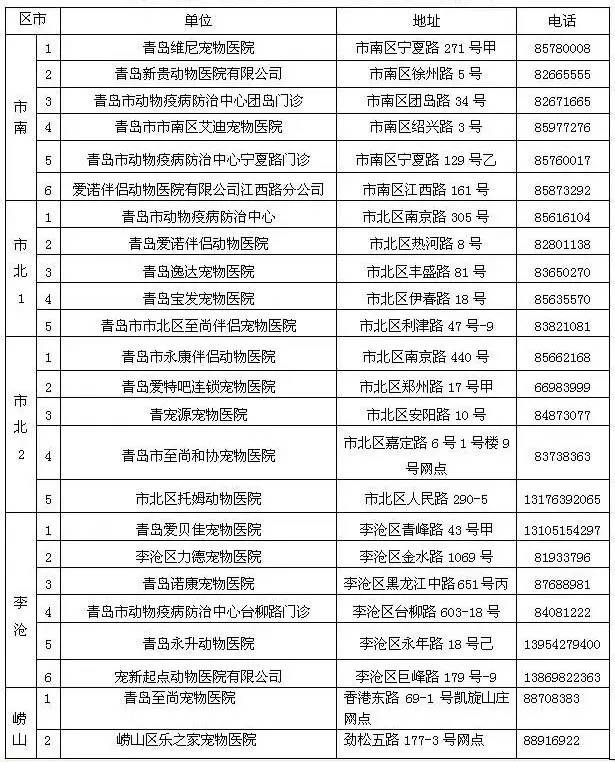 市公安局在市内三区和崂山区选定24家宠物医院作为养犬登记服务站▼▼▼