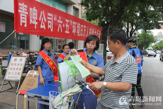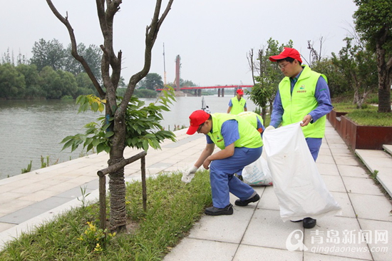 青岛新闻网2017年6月6日讯 (记者 夏巧怡)6月5日,青岛啤酒公司在青啤二厂举行“六•五”环境日宣传纪念活动暨万人护绿大行动启动仪式,300多名“蓝天卫士”在青啤环保旗的引领下,走近张村河,为这条城市生态河流“护绿洗脸”。与此同时青岛啤酒遍布全国各地60多家工厂的近万名职工,也纷纷走上街头同步开展万人护绿活动。
