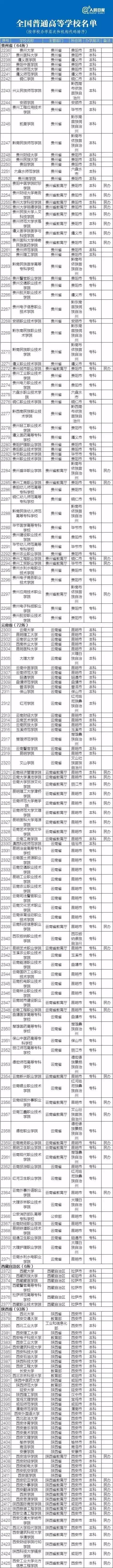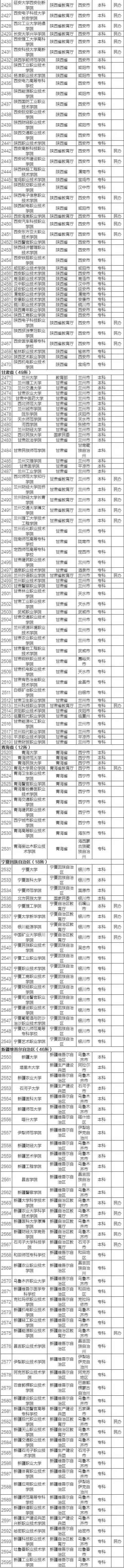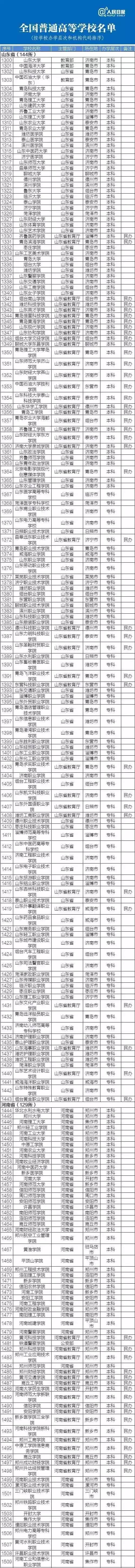 最新正规高校名单