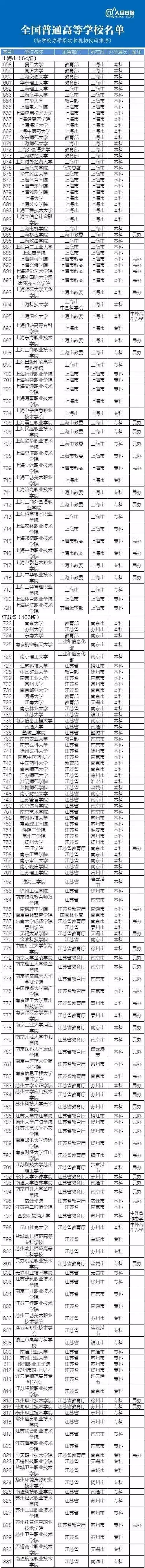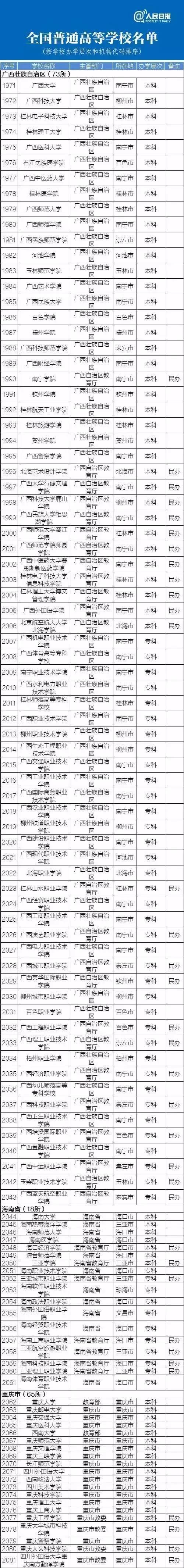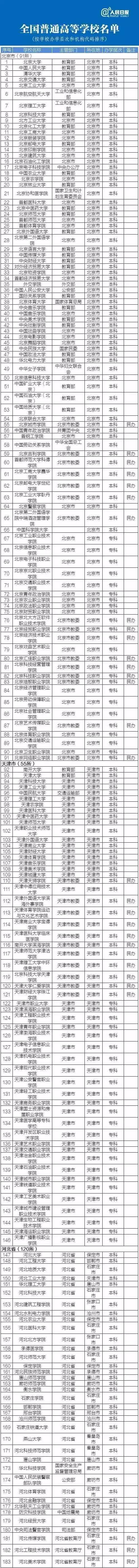 最新正规高校名单