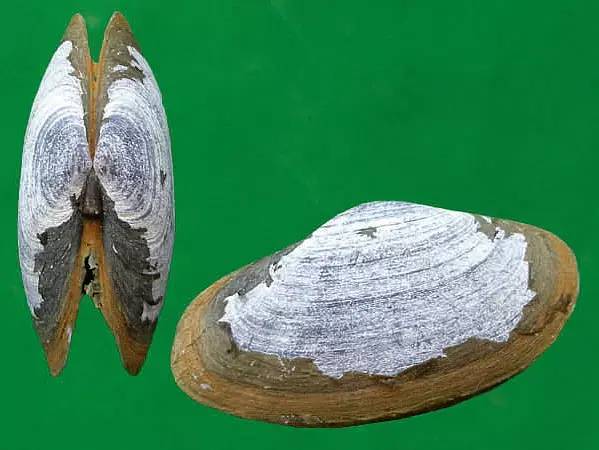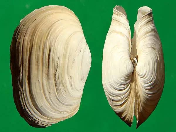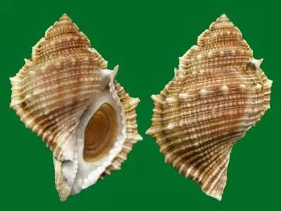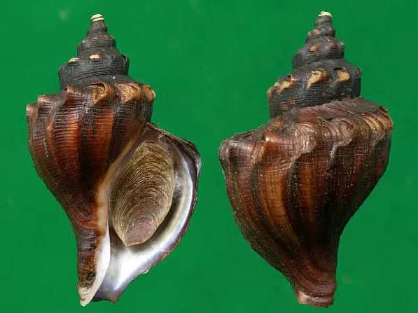 此贝个大,结实。左右两壳不对称,外形及颜色都不同。