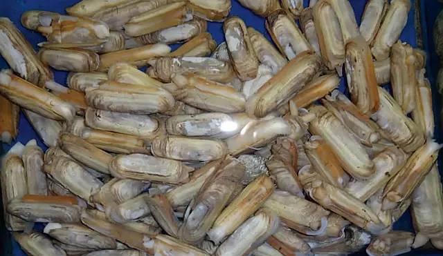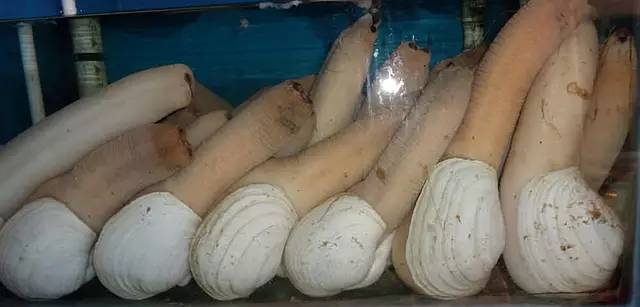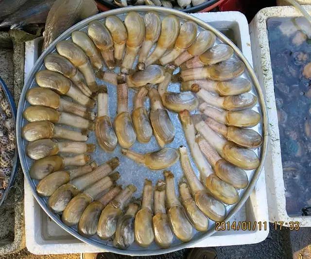 市场图。蛏物种不少,市场上一般不加区分,笼统地叫大竹蛏或小竹蛏。