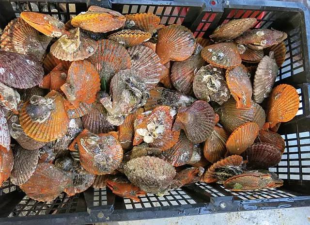 市场照片。大的会被叫成扇贝王,北极扇贝等。