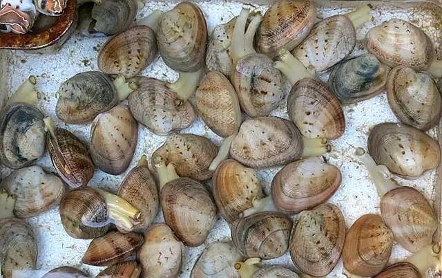 市场图。市场上一般称为大文蛤,实际不是文蛤。一般不只一种,多混售。