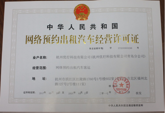2017年3月28日,曹操专车率先在青岛正式取得《网络预约出租汽车经营许可证》,这意味着曹操专车在青岛网约车市场运营取得了合法地位。曹操专车负责人刘金良表示,这一定程度上反映了国家政策对新能源汽车的支持力度加大,同时也是青岛相关部门对曹操专车B2C运营模式的认可,能对青岛网约车市场的规范起到积极影响。