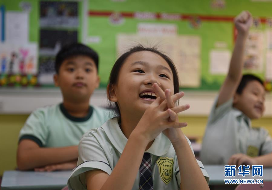 在位于香港东涌的香港教育工作者联会黄楚标学校,文菡在聚精会神地上英语课(5月12日摄)。新华社发(王申摄)