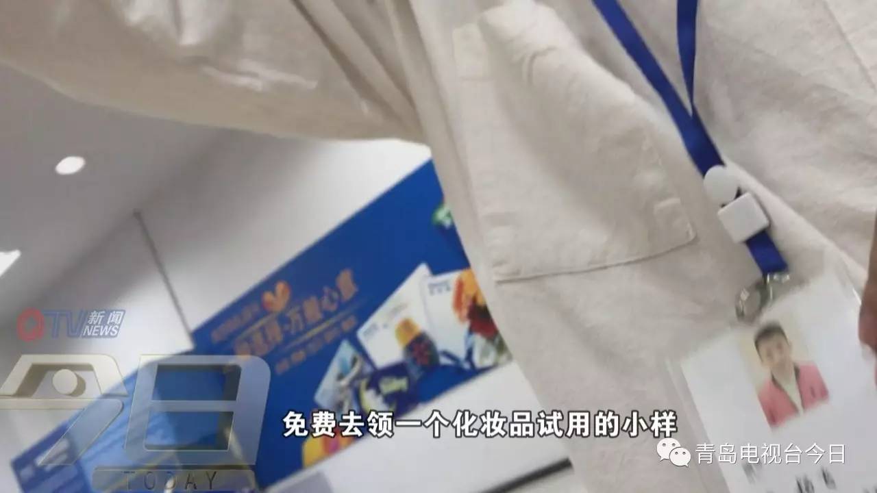 6月21号上午,记者来到台东万达。在二楼电梯口处,一名身穿白色衬衣的男子突然上前拦住了记者,让记者去免费领一个化妆品试用的小样,用的效果好的话帮她们宣传一下。