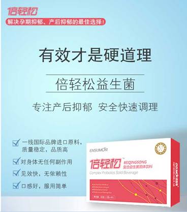 倍轻松复合益生菌是一款专门针对产后抑郁研发的产品,在国内尚属独家产品。倍轻松的瑞士乳杆菌和长双歧杆菌等有益菌,能够修复胃肠屏障,阻止致病菌、抗原的进入并引发炎症,通过胃肠迷走神经感觉纤维直接与中央神经系统通信,在神经递质层面和功能上进行改变,调节五羟色胺和多巴胺的含量,能有效消除负面消极影响,帮助增强记忆及塑造积极心态,从而有效调理产后抑郁!