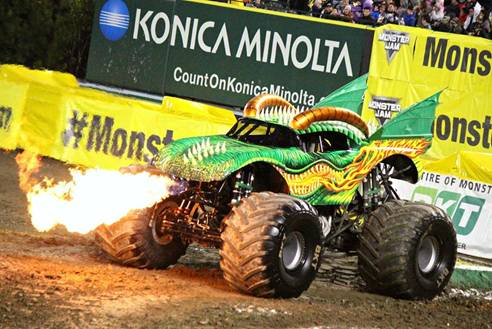 这些巨型大怪物通常高3.8米、宽3.7米、重4.5吨,为了能在短时间内提供大功率速度输出,怪兽卡车拥有1,500-2,000的马力,以及165公里每小时的最高时速。在表演中,怪兽卡车可以弹跳至8米的高空中,并在空中飞行约40米,这个飞行距离比14辆轿车并排排列的距离还要长。