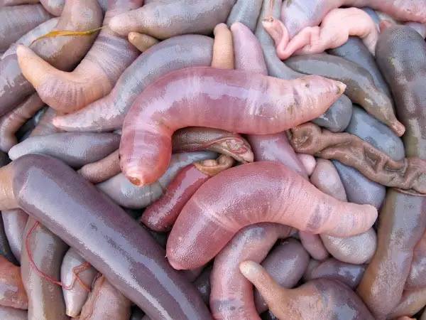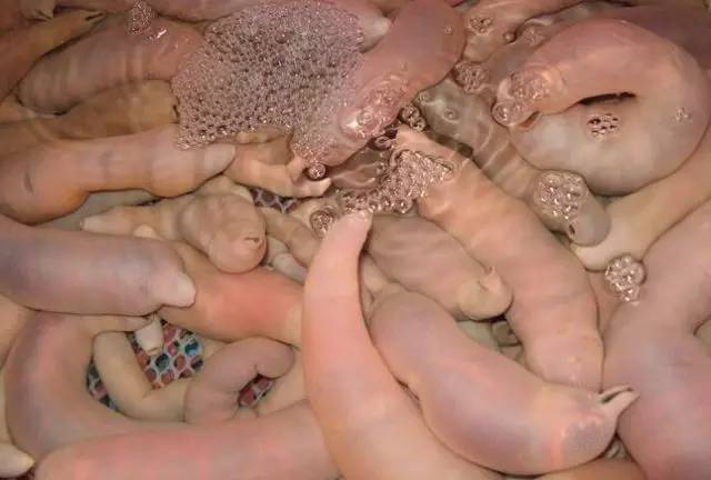它是一种长圆筒形的软体动物,软乎乎地蠕动,浑身无毛刺,浅黄色。海肠不光长得像裸体海参,其营养价值比起海参也不逊色。