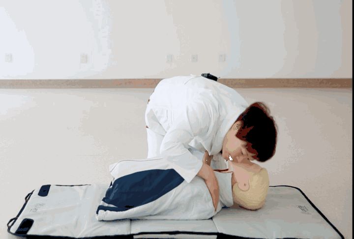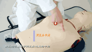 要点四同时解开病人的衣扣和腰带平卧于地上,身体平直给予胸外心脏按压。按压的位置于正常体态双乳头连线中点,一手掌根紧贴于病人的胸壁,另一手掌根重叠于下一手上。