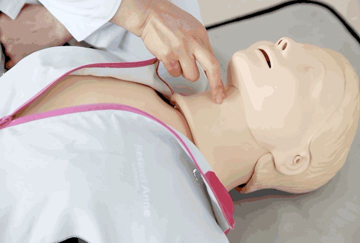 要点一发现病人倒地后,立即跪于其右侧检查病人反应,轻拍双肩并且贴于耳边大声呼叫:“你怎么了!你怎么了!”