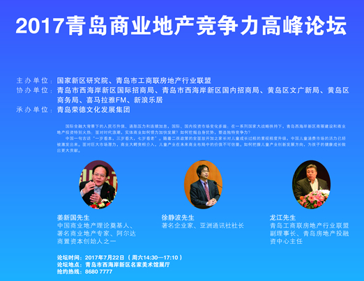 群雄逐鹿的商业地产,如何做大财富的雪球?”7月17日,记者从2017青岛商业竞争力高峰论坛筹备委员会得知,此次论坛由国家新区研究院、青岛市工商联房地产行业联盟主办;青岛市西海岸新区国际招商局、青岛市西海岸新区国内招商局、黄岛区文广新局、黄岛区商务局、喜马拉雅FM、新浪乐居协办;青岛荣德文化发展集团承办。组委会力邀姜新国、徐静波、龙江等多名业界大咖以及青岛房地产业内人士,进行圆桌对话,展开头脑风暴,共同探讨商业地产竞争力问题,为青岛西海岸新区商业发展建言献策。为各界来宾及投资人提供一个平台,激荡智慧,把握机遇,共赢下一个商业时代!