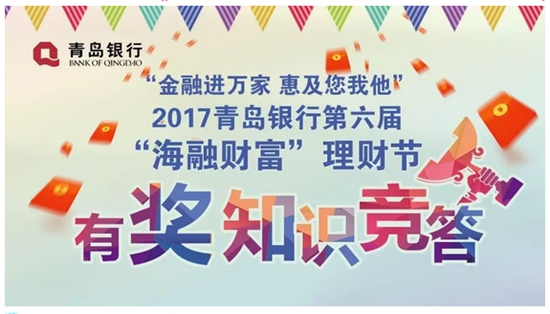 为了让大家参与到理财节活动中来,小编特意策划了“ 2017青岛银行第六届“海融财富”理财节”有奖知识竞答。