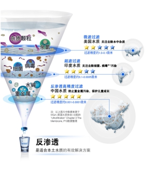 市面上现有的净水设备以过滤技术区分,大致可以分为微滤、超滤、反渗透三种。微滤技术,可以滤除余氯,改善自来水的口感;超滤技术,可以滤除细菌、病毒等杂质;想要在滤除余氯、细菌等杂质的同时还能有效滤除重金属杂质,就一定要选择反渗透技术了。正如中消协提示,“微滤、超滤、反渗透三种净水器中,反渗透净水器的过滤效果好,可以真正滤除重金属,让饮水变得更安全”。
