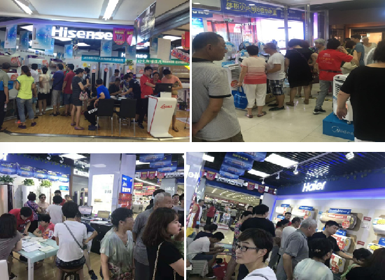 7月21日-8月6日,国美16周年大庆,全青岛进入“国美时间”,司庆前三天,青岛各大卖场人头攒动,本次司庆,为感谢岛城消费者16年厚爱,青岛国美以 一场超大规模促销来回馈感恩, 1.5P空调仅售票1899元,旧手机抵现金最高可抵现4800元,购物大抽奖、夜市大返现、套购送空净,全球500电器大牌共同见证国美力量。
