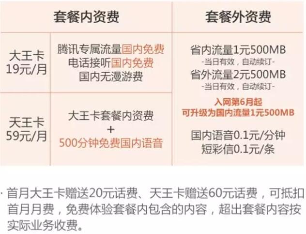 接下来为大家介绍一下腾讯王卡的内容