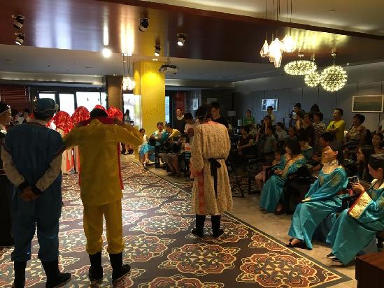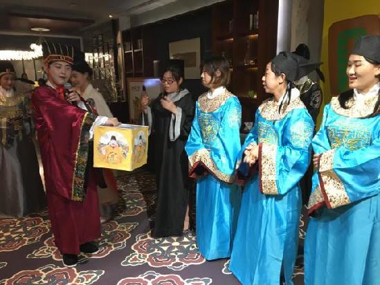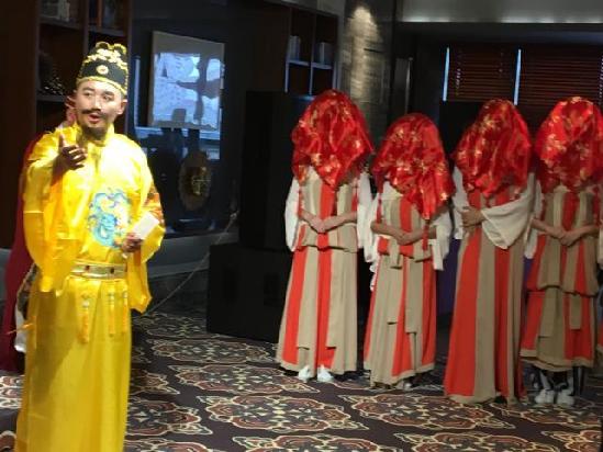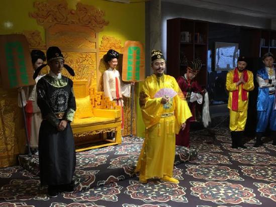 由青岛海信广场原创打造的《上朝啦》说讲述的是唐代「松赞干布和亲文成公主」故事的演绎。人物、造型1:1还原《步撵图》,现场观看时从他们的着装、行为,就能很快猜到面前的这个人所扮演的角色是谁。