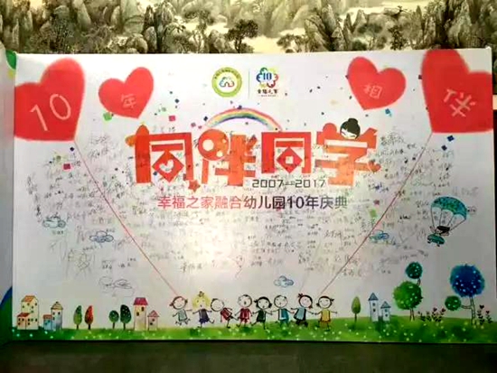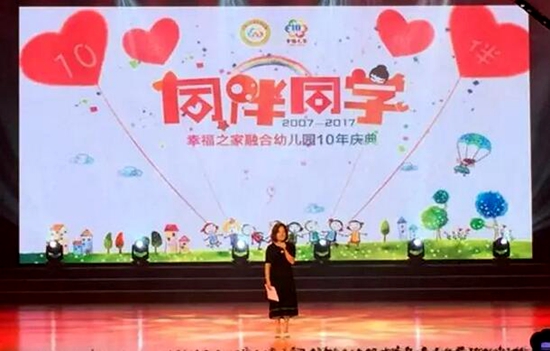 本次庆典分为四个环节,分别以:回望历程,感恩有你,温暖现在和爱传未来为主题。充分的将幸福之家的十年以不同的形式呈现了出来。追溯十年的办园历程,回首走过的风雨岁月,有欣喜、有感动、有泪水也有欢笑,幼儿园之所以有今天的发展,离不开各级政府对幸福之家的关心与支持,离不开社会各界爱心人士对自闭症儿童的帮助。融合教育,就是要让所有儿童得到合适的教育,使每个儿童都得到最佳成长机遇和对社会生活的最佳适应。感恩融合之路上的每一个人,因为有了你们,幸福之家的融合教育一定会谱写出更加辉煌的篇章。而幸福之家也一定会以一颗种子的力量,向外延伸课程,推动学前融合教育的发展。