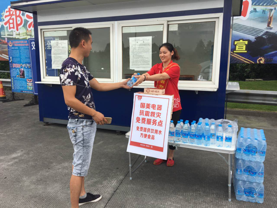 为了保障灾区群众人身安全,九寨沟县邻近国美门店已开辟暖心通道,为受灾群众及救灾人员提供休息场地、饮用水和热水,并提供衣物烘干服务。同时,调配门店人员,在通往九寨沟的必经之路,增设国美服务站,免费为前往支援的各类车队提供饮用水和食物。