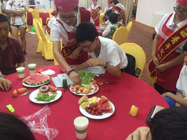 喜旺提供蔬菜、水果及自家的熟食产品,让孩子和家长自由发挥,进行拼盘。
