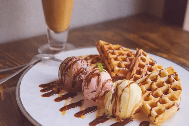 烤至外酥里嫩的华夫,搭配香浓的冰淇淋