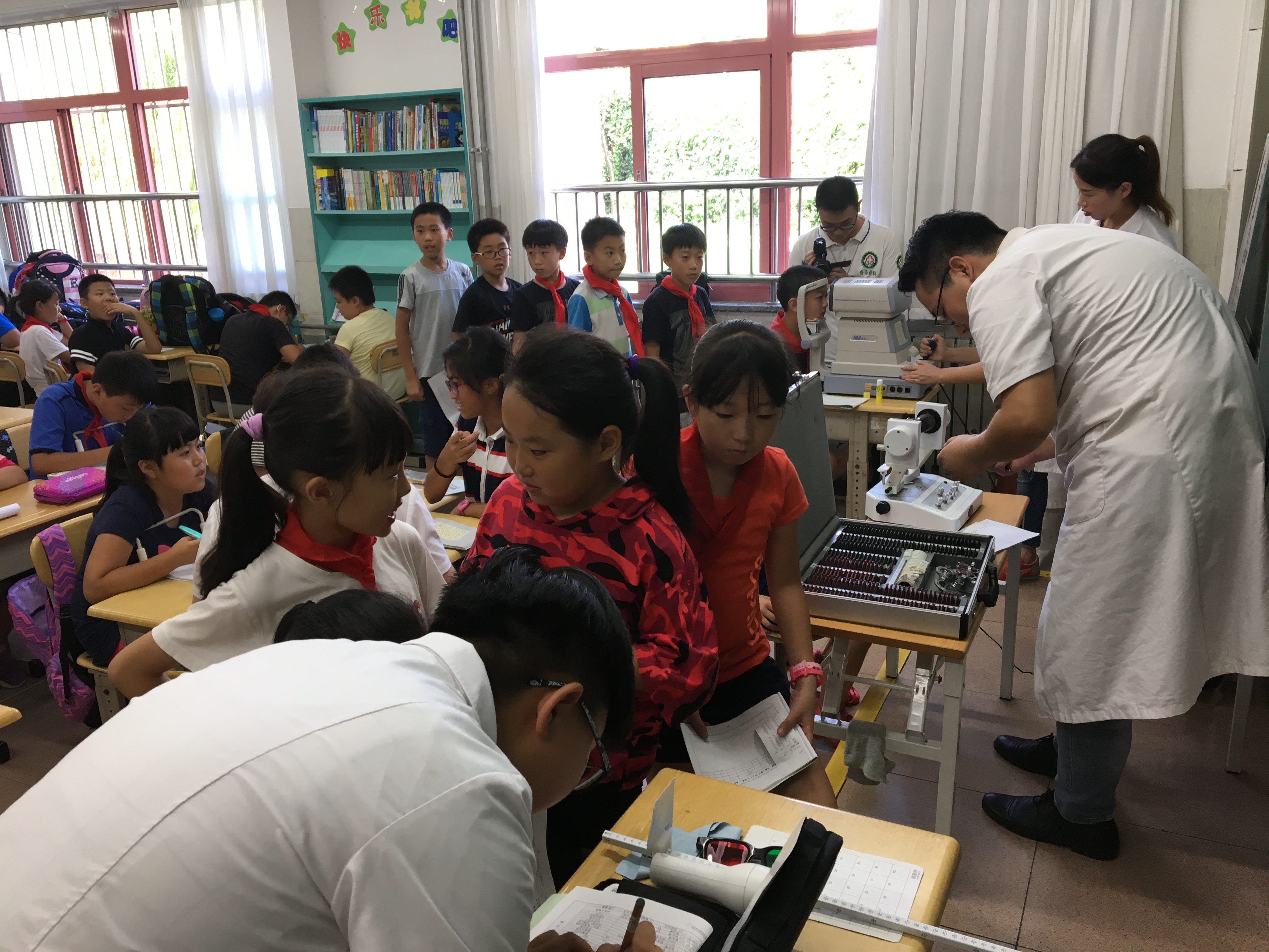 2017年9月8日,青岛实验小学联合青岛市红十字会同青岛市鲁东眼科医院视光中心共同举办公益活动爱眼·蓝天行关爱青少年视力健康走进青岛市实验小学五年一班,为同学们进行全方位的视力、眼屈光、调节等一系列眼部检查,努力做到早发现、早预防、早干预、及时治疗,让近视、弱视等视力问题远离中小学生。