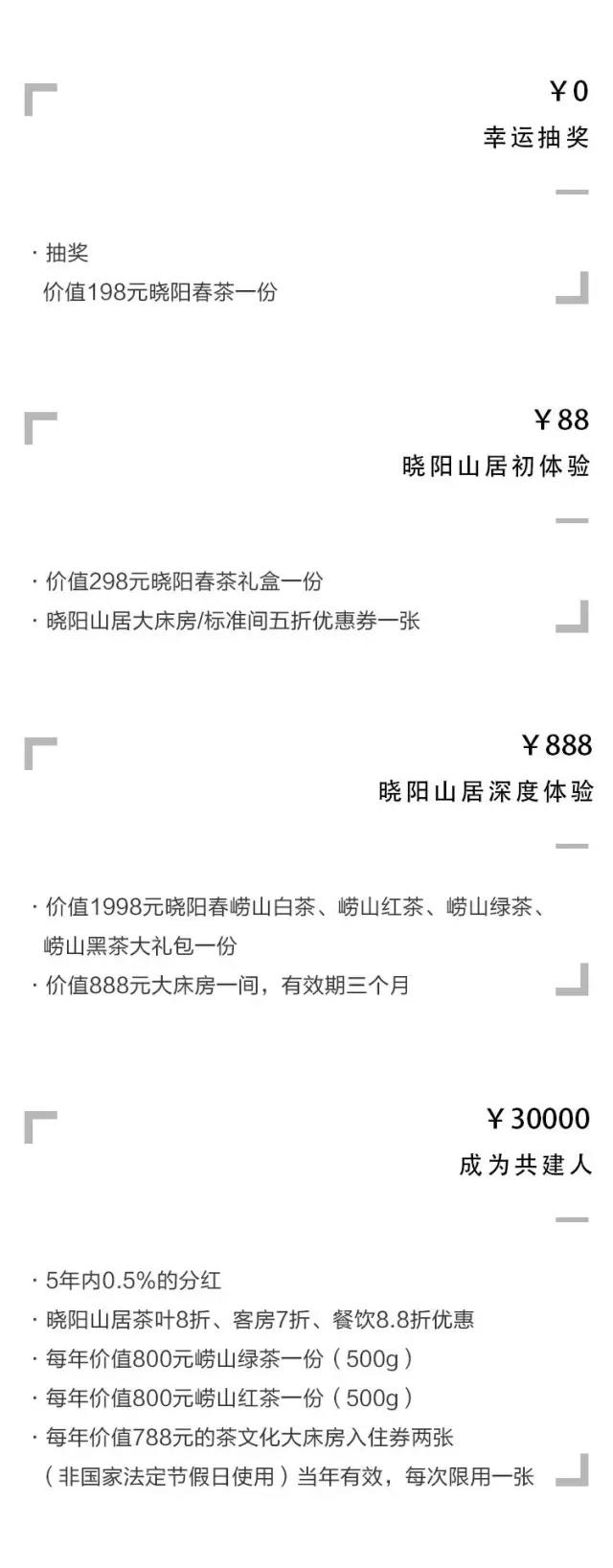 在“晓阳山居”的前期规划中,留出茶生活体验的空间,做好市场调研,选择客户群喜欢的体验种类进行建造,比如手工制茶体验区,手工采茶体验区,手工造茶纸体验区,手工茶点体验区等等,让来晓阳山居的客人能够陪伴身边的人,放下手机,放下忙碌的工作,珍惜当下的时光。