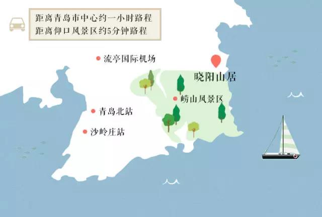 晓阳山居位于青岛市崂山区王哥庄街道晓望社区,距离青岛市中心约一小时路程,距离仰口风景区约5分钟路程,这里依山傍海,是崂山茶的中心产区,更是道教仙山崂山的核心景区。