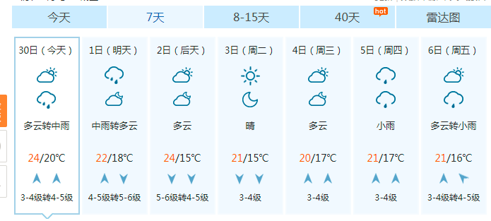 青岛30日多云转中雨 最高气温24℃ 最低20℃