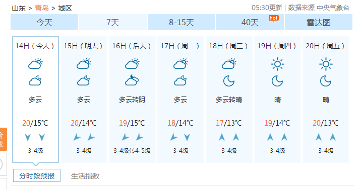 青岛15日多云气温15℃-20℃ 下周天气以多云为主