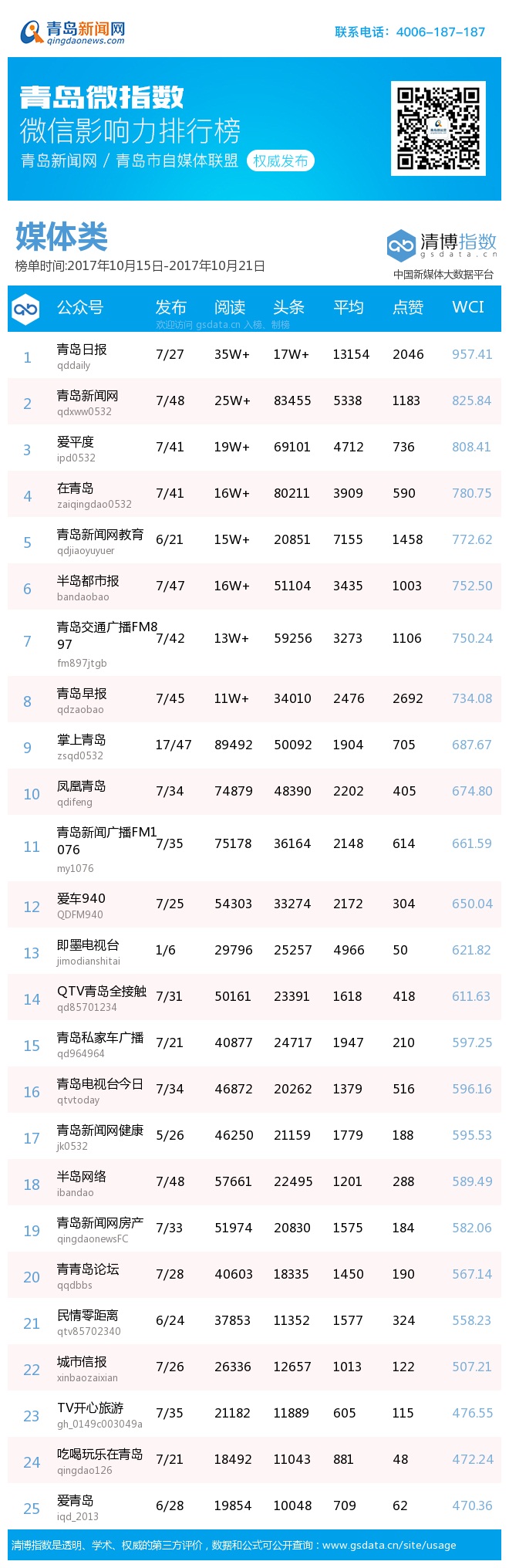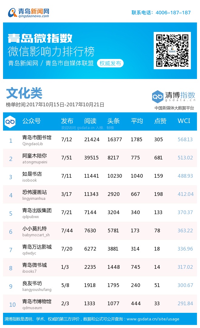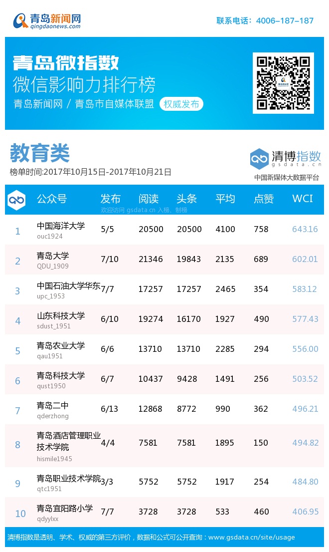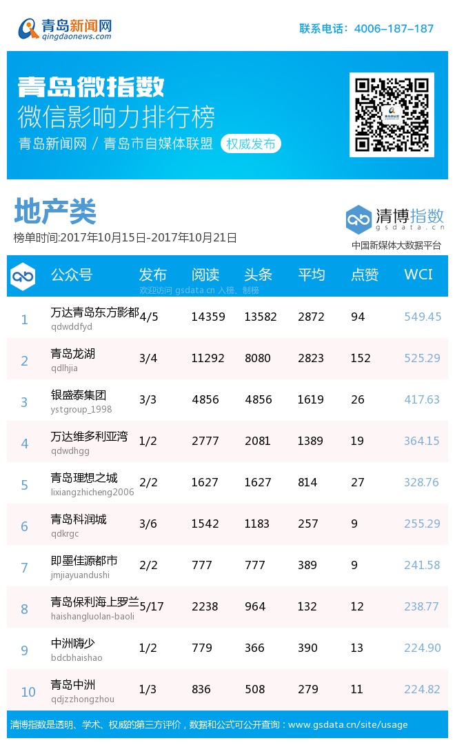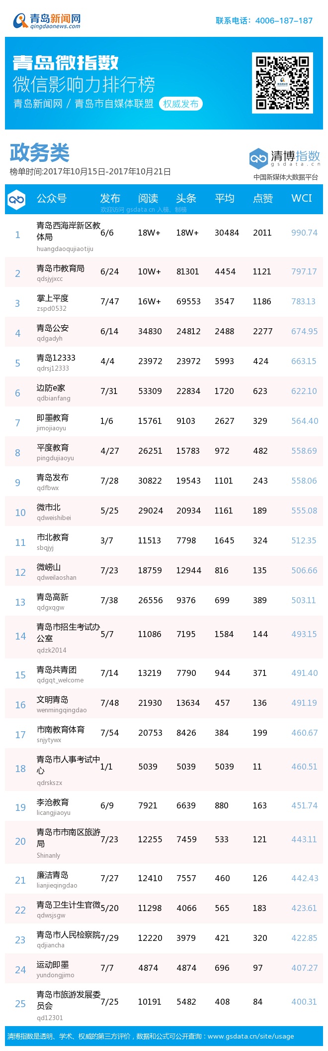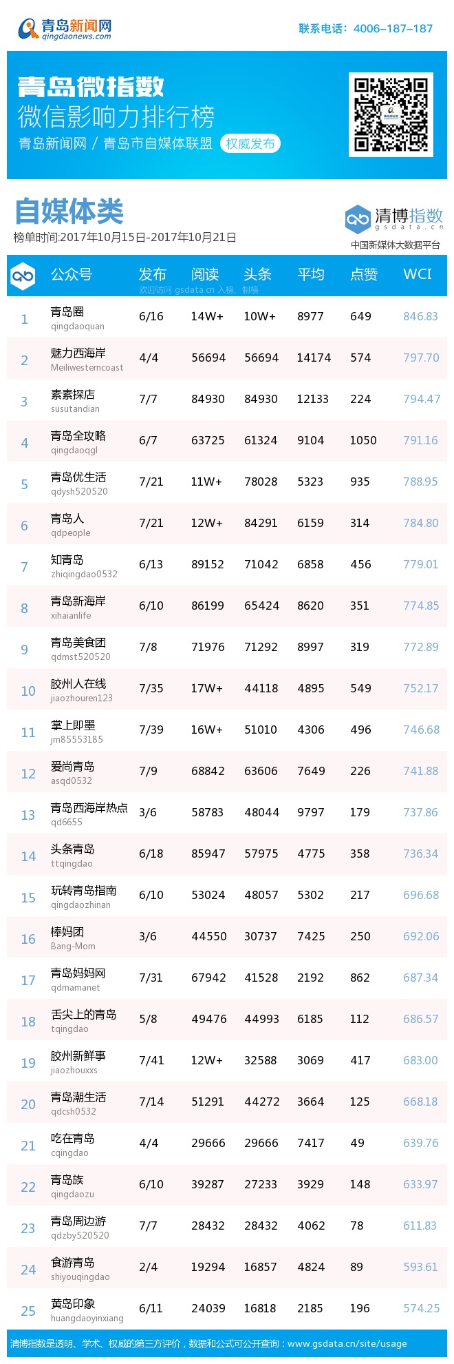 3、本次榜单收录了青岛13个行业微信公众号,如您的账号暂未收录,可联系4006-187-187。