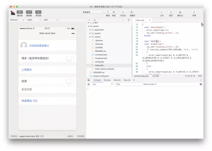 此次新能力更新中,微信终于让开发者工具支持「全世界最好的语言」PHP。同时,开发者工具中的腾讯云集成,也添加了 PHP支持。