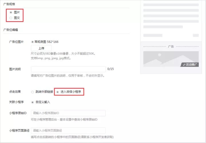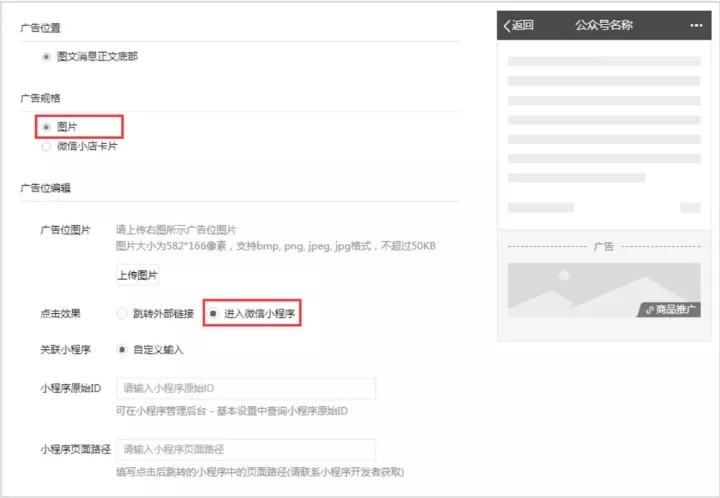 广告会出现在公众号正文的下方,用户只需点击图片,就能跳转到指定的小程序落地页。