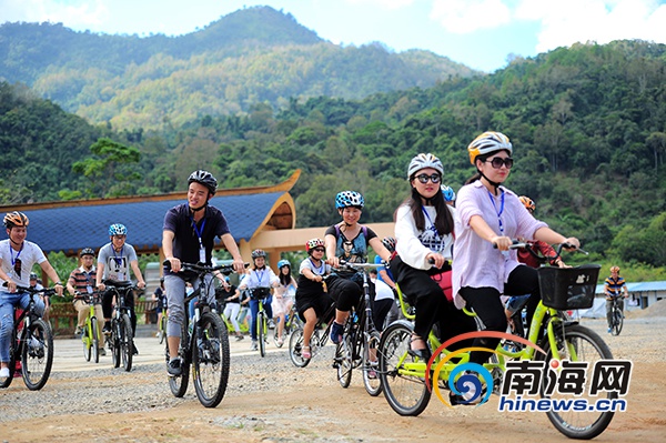 11月17日,2017全国重点网络媒体记者海南行采访团来到了五指山市,体验骑行。南海网记者 沙晓峰 摄