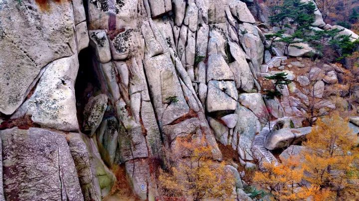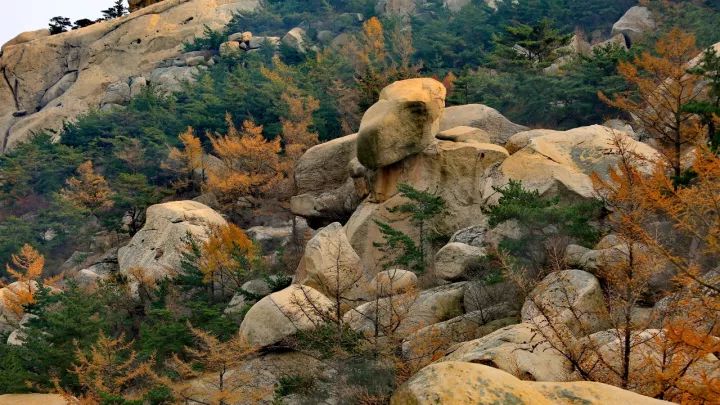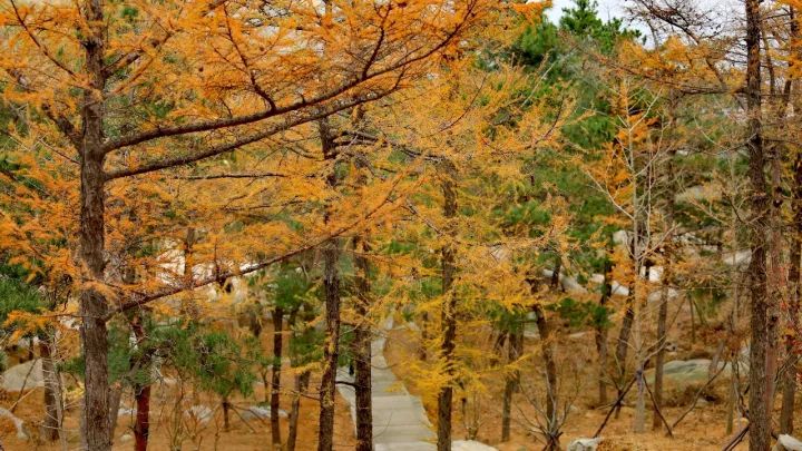 地处崂山东海岸的华严游览区,好像拖慢了时间的脚步一样,至今依然是一副满园金色的秋天模样。