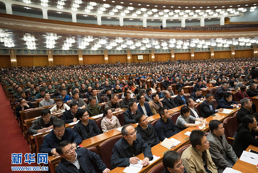 中央宣传部、中央直属机关工委、中央国家机关工委、教育部、中央军委政治工作部、中共北京市委在北京人民大会堂举办学习贯彻党的十九大精神中央宣讲团首场报告会(11月3日摄)。新华社记者 丁海涛 摄